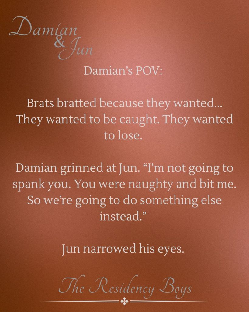 This serial is a modern MMM+ BDSM chosen family romance intended for mature audiences only. While Damian and Jun are the central romantic pairing, there are additional characters. There is no cheating. If you like your romance kinky and spicy, then this story is for you.