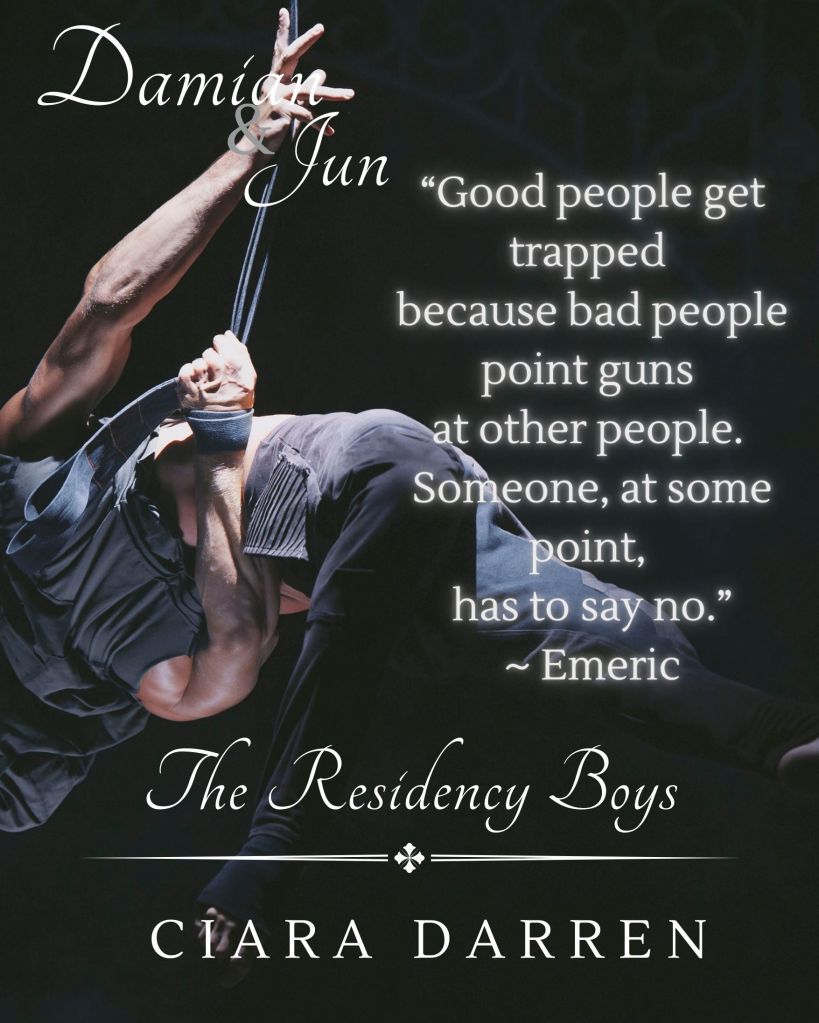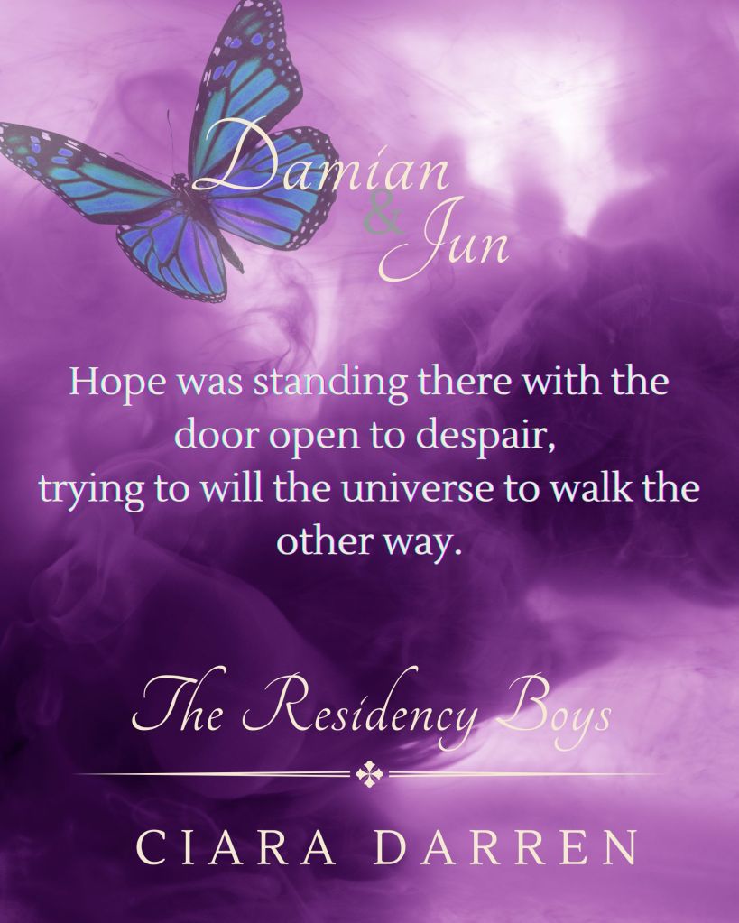 Damian swallowed. He should send Jun away. There was enough darkness in his life without Damian’s past adding to it. “You shouldn’t come.”